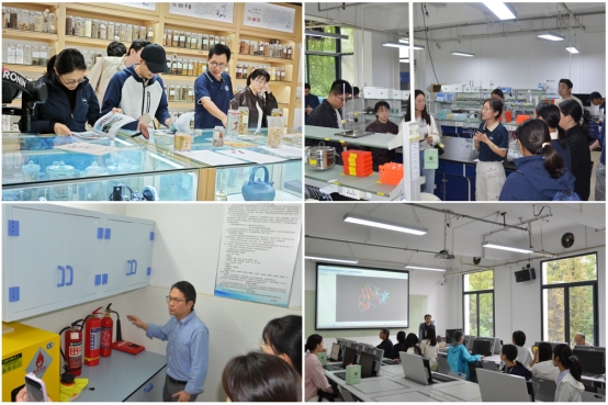计算机辅助药物设计实验室:实验室配备专业药物设计软件,黄吉荣老师介绍了药物靶点筛选、先导化合物设计、药物分子模拟等操作流程,并展示了学生自主设计的药物分子模型。通过观摩与体验,参会人员深入了解了人工智能、大数据等现代技术在药物设计领域的应用。